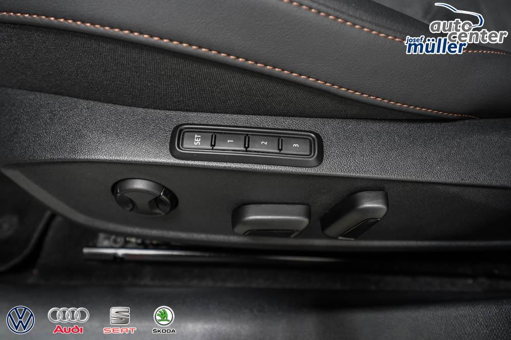 Beifahrersitz höhenverstellbar, Fahrersitz höhenverstellbar, Lederlenkrad, Lendenwirbelstütze, Mittelarmlehne vorne, Gepäckraumabdeckung, geteilt umklappbare Rücksitzlehne, Lenkrad höhenverstellbar, Sitzbezug Dinamica, Ambiente-Beleuchtung, Elektrisch verstellbarer Fahrersitz mit Memory Funktion, Beheizbares Lenkrad, Supersportlenkrad, Isofix, Isofix Beifahrersitz, abgedunkelte Scheiben, 19 Zoll Alufelgen Sandstorm Kupfer, Dachreling schwarz, ABS, Alarmanlage, Außenspiegel elektrisch, Fensterheber elektrisch, Kopfairbags, Nebelscheinwerfer, Schiebedach, Seitenairbags, Servolenkung, Sitzheizung vorn, DCC, ESP, Wegfahrsperre, Außenspiegel beheizbar, Beifahrerairbag, Fahrerairbag, Parkpilot hinten, Parkpilot vorne, Reifendruckkontrolle, Regensensor, Lichtsensor, Digital Cockpit, Anhängekupplung schwenkbar inkl. Trailer Assist, Tempomat Abstand ACC, Fernlichtassistent, Spurhalteassistent plus, Totwinkelassistent, Verkehrszeichenerkennung, LED Matrix Scheinwerfer, LED-Tagfahrlicht, Rückfahrkamera, Park-Assistent, Panoramadach, Elektrische Heckklappe inkl. Virtual Pedal, KeylessEntry, StartStopSystem, Innenspiegel automatisch abbl., Müdigkeitswarnsystem, Notrufsystem, Schaltwippen, Klimaautomatik 3-Zonen, 360-Grad-Kamera, Geschwindigkeitsbegrenzer, Android Auto, Apple Carplay, Freisprecheinrichtung, Induktionsladestation, Sprachsteuerung, USB, Radio DAB, Bluetooth, Bordcomputer, Radio-Navigationssystem, variabler Ladeboden, Full Link, Fahrprofilauswahl, Exit Assist, erweiterte Herstellergarantie 5 Jahre/100.000km, Stauassistent, Pre-Crash, Cerenomy Light,