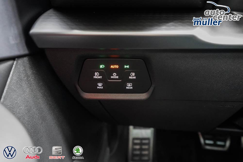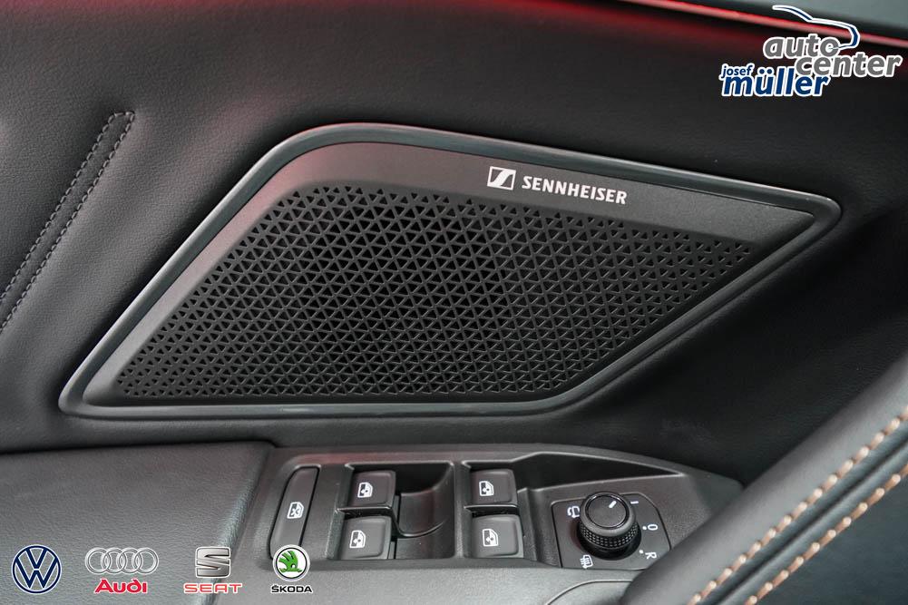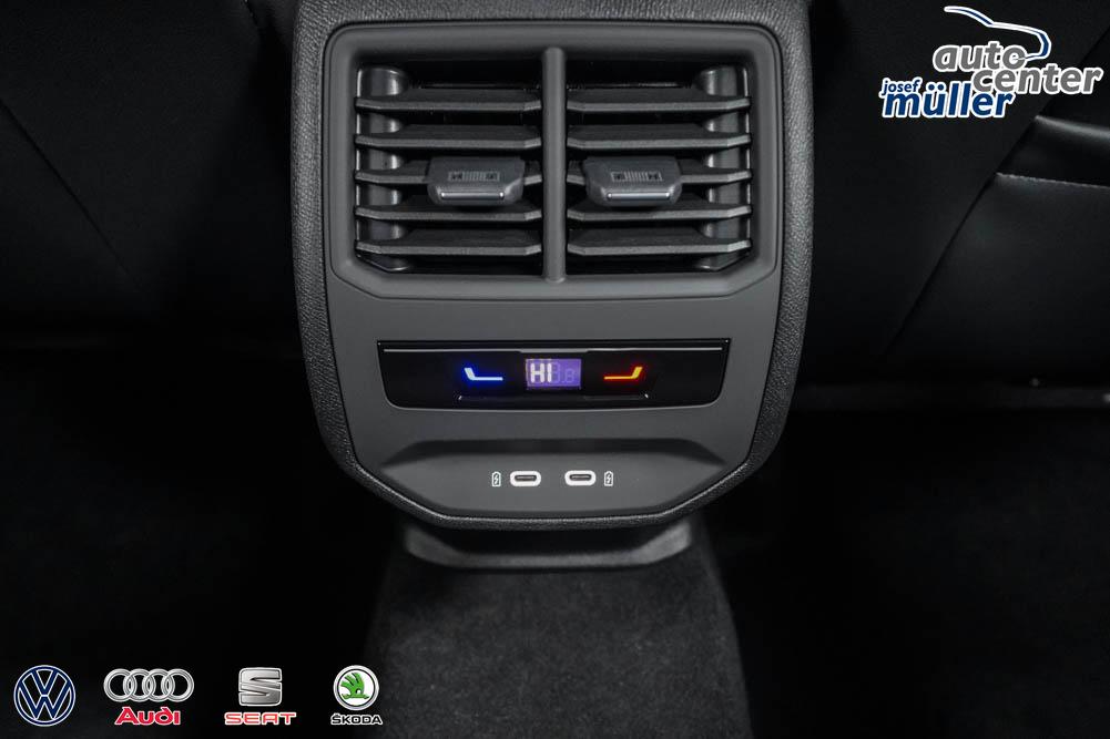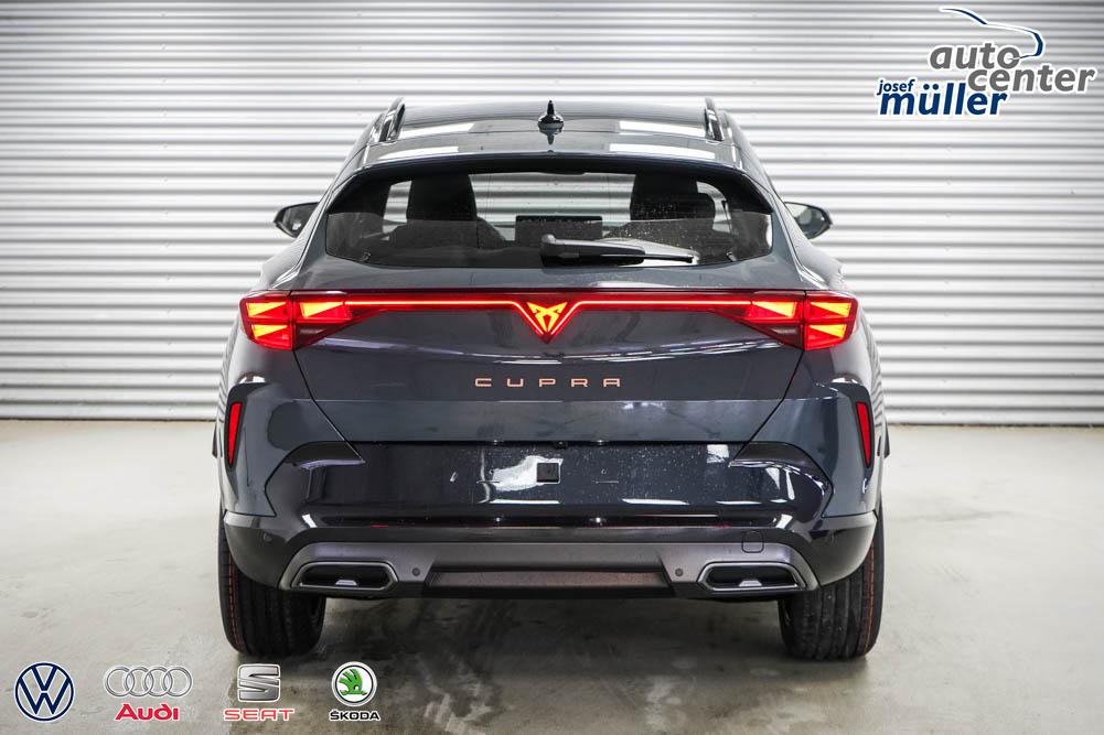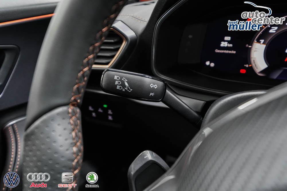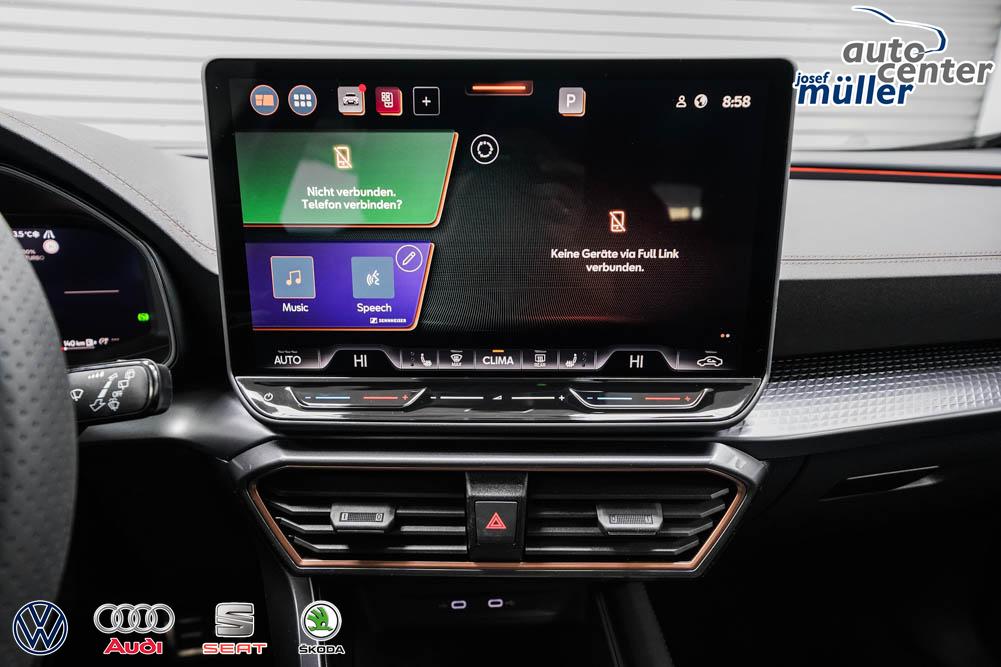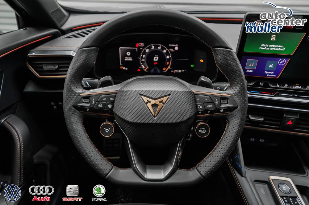 Beifahrersitz höhenverstellbar, Fahrersitz höhenverstellbar, Lederlenkrad, Lendenwirbelstütze, Mittelarmlehne vorne, Sitzbezug Stoff, geteilt umklappbare Rücksitzlehne, Lenkrad höhenverstellbar, Smart Wraparound Interieur Light, Beheizbares Lenkrad, Multifunktionslenkrad, Isofix, Isofix Beifahrersitz, abgedunkelte Scheiben, 18 Zoll Alufelgen , Dachreling schwarz, ABS, Alarmanlage, Außenspiegel elektrisch einstell-/anklappbar, Fensterheber elektrisch, Kopfairbags, Nebelscheinwerfer, Seitenairbags, Servolenkung, Sitzheizung, ESP, Wegfahrsperre, Außenspiegel beheizbar, Beifahrerairbag, Fahrerairbag, Parkpilot hinten, Parkpilot vorne, Reifendruckkontrolle, Regensensor, Lichtsensor, Digital Cockpit, Anhängekupplung schwenkbar, Tempomat Abstand ACC, Spurhalteassistent, Verkehrszeichenerkennung, LED-Scheinwerfer, Tagfahrlicht, Rückfahrkamera, Elektrische Heckklappe inkl. Virtual Pedal, KeylessEntry, StartStopSystem, Innenspiegel automatisch abbl., Müdigkeitswarnsystem, Notrufsystem, Schaltwippen, Klimaautomatik 3-Zonen, Geschwindigkeitsbegrenzer, Android Auto, Apple Carplay, Freisprecheinrichtung, Induktionsladestation, Sprachsteuerung, USB, Radio, Radio DAB, Bluetooth, Bordcomputer, IMMERSIVE by Sennheiser, Full Link, Cupra Full Link, variabler Ladeboden,