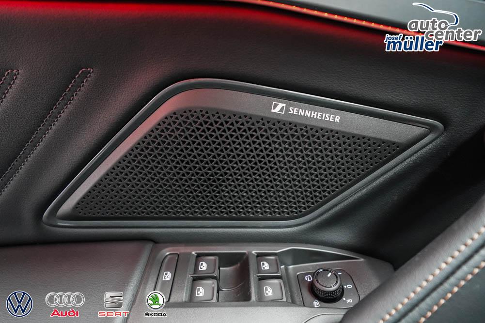 Beifahrersitz höhenverstellbar, Fahrersitz höhenverstellbar, Lederlenkrad, Mittelarmlehne vorne, Sitzbezug Stoff, Sportsitze vorne, Lenkrad höhenverstellbar, Ambiente-Beleuchtung, Beheizbares Lenkrad, Multifunktionslenkrad, Isofix, abgedunkelte Scheiben, 18 Zoll Alufelgen Tempest, Dachreling schwarz, ABS, Alarmanlage, Außenspiegel elektrisch anklappbar, Fensterheber elektrisch, Seitenairbags, Servolenkung, Sitzheizung vorne, ESP, Wegfahrsperre, Zentralverriegelung mit Funk, Beifahrerairbag, Fahrerairbag, Parkpilot hinten, Parkpilot vorne, Reifendruckkontrolle, Digital Cockpit, Anhängekupplung schwenkbar, Tempomat Abstand ACC, Light Assist, LED-Scheinwerfer, LED-Tagfahrlicht, Rückfahrkamera, Elektrische Heckklappe inkl. Virtual Pedal, Kessy, StartStopSystem, Notrufsystem, Klimaautomatik 3-Zonen, Android Auto, Apple Carplay, Freisprecheinrichtung, USB, Radio, Bluetooth, Bordcomputer, Soundsystem IMMERSIVE by Sennheiser, Full Link, variabler Ladeboden, 3D-Rückleuchten mit Ceremony Light, erweiterte Herstellergarantie 5 Jahre/100.000km,