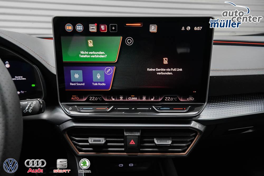 Beifahrersitz höhenverstellbar, Fahrersitz höhenverstellbar, Lederlenkrad, Lendenwirbelstütze, Mittelarmlehne vorne, Sitzbezug Stoff, Sportsitze vorne, Gepäckraumabdeckung, geteilt umklappbare Rücksitzlehne, Lenkrad höhenverstellbar, Ambiente-Beleuchtung, Beheizbares Lenkrad, Multifunktionslenkrad, Isofix, Isofix Beifahrersitz, abgedunkelte Scheiben, 18 Zoll Alufelgen Tempest, Dachreling schwarz, ABS, Alarmanlage, Außenspiegel elektrisch anklappbar, Fensterheber elektrisch, Kopfairbags, Nebelscheinwerfer, Seitenairbags, Servolenkung, Sitzheizung vorne, Stabilitätskontrolle, Wegfahrsperre, Zentralverriegelung mit Funk, Außenspiegel beheizbar, Beifahrerairbag, Fahrerairbag, Parkpilot hinten, Parkpilot vorne, Reifendruckkontrolle, Regensensor, Lichtsensor, Digital Cockpit, Anhängekupplung schwenkbar, Tempomat Abstand ACC, Light Assist, Spurhalteassistent, Verkehrszeichenerkennung, LED-Scheinwerfer, LED-Tagfahrlicht, Rückfahrkamera, Elektrische Heckklappe inkl. Virtual Pedal, Kessy, StartStopSystem, Innenspiegel automatisch abbl., Müdigkeitswarnsystem, Notrufsystem, Schaltwippen, Klimaautomatik 3-Zonen, Geschwindigkeitsbegrenzer, Android Auto, Apple Carplay, Freisprecheinrichtung, Induktionsladestation, Sprachsteuerung, USB, Radio, Radio DAB, Bluetooth, Bordcomputer, Full Link, variabler Ladeboden, 3D-Rückleuchten mit Ceremony Light