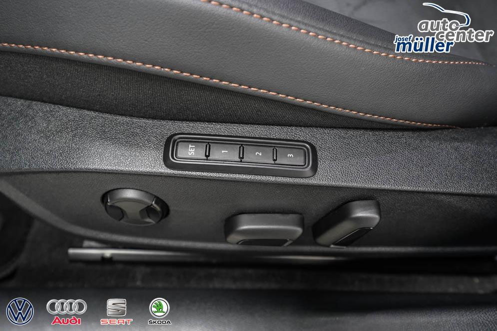 Fahrersitz höhenverstellbar, Lederlenkrad, Lendenwirbelstütze, Mittelarmlehne vorne, Sitzbezug Stoff, Sportsitze, Gepäckraumabdeckung, Lenkrad höhenverstellbar, Ambiente-Beleuchtung, Elektrisch verstellbarer Fahrersitz mit Memory Funktion, Beheizbares Lenkrad, Supersportlenkrad, Isofix, Isofix Beifahrersitz, abgedunkelte Scheiben, 19 Zoll Alufelgen Polar Kupfer, Dachreling schwarz, ABS, Alarmanlage, Außenspiegel elektrisch, Fensterheber elektrisch, Kopfairbags, Nebelscheinwerfer, Schiebedach, Seitenairbags, Servolenkung, Sitzheizung vorn, DCC, Stabilitätskontrolle, Wegfahrsperre, Außenspiegel beheizbar, Beifahrerairbag, Fahrerairbag, Parkpilot hinten, Parkpilot vorne, Reifendruckkontrolle, Regensensor, Lichtsensor, Digital Cockpit, Anhängekupplung schwenkbar, Tempomat Abstand ACC, Fernlichtassistent, Notbremsassistent, Spurhalteassistent plus, Totwinkelassistent, Verkehrszeichenerkennung, LED Matrix Scheinwerfer, Tagfahrlicht, Pannenset, Rückfahrkamera, Park-Assistent, Panoramadach, Elektrische Heckklappe inkl. Virtual Pedal, KeylessEntry, StartStopSystem, Innenspiegel automatisch abbl., Müdigkeitswarnsystem, Notrufsystem, Klimaautomatik 3-Zonen, Geschwindigkeitsbegrenzer, Android Auto, Apple Carplay, Freisprecheinrichtung, Induktionsladestation, Sprachsteuerung, USB, Bluetooth, Bordcomputer, Radio-Navigationssystem, variabler Ladeboden, Full Link, Fahrprofilauswahl, Cerenomy Light, Exit Assist, Stauassistent, Pre-Crash, erweiterte Herstellergarantie 5 Jahre/100.000km, Schalensitze vorn,