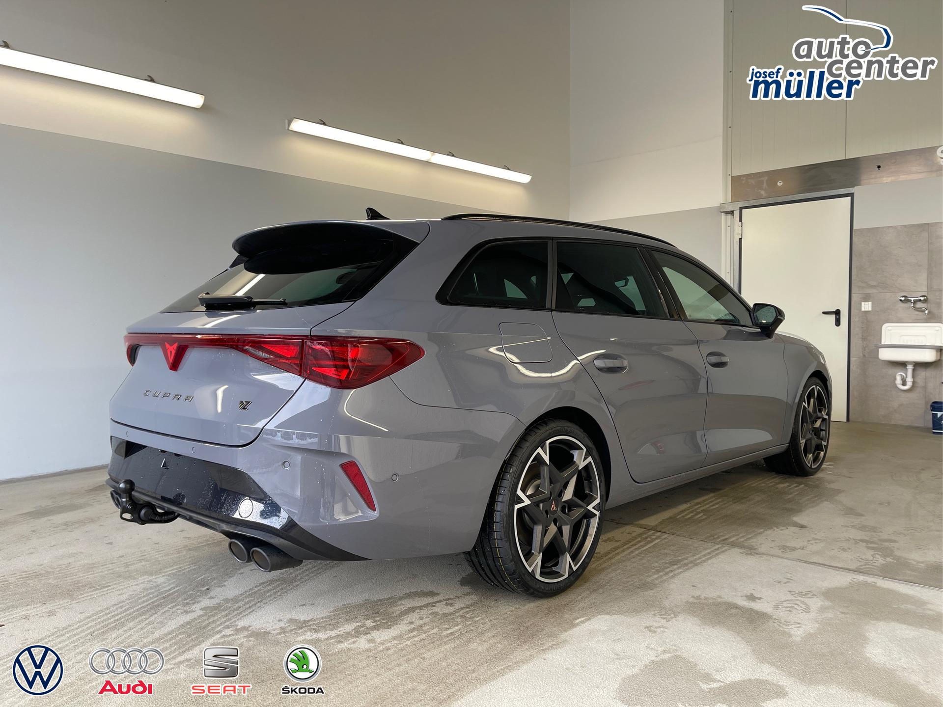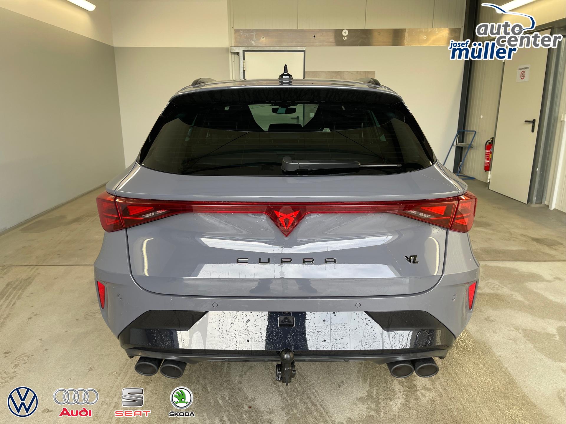 • 19 Zoll Leichtmetallräder, Außenspiegel elektrisch einstell- und beheizbar, Außenspiegel elektrisch anklappbar mit Memory-Funktion, Wärmeschutzverglasung, Pedale in Aluminium, Doppelter Laderaumboden, Laderaumabdeckung, CUPRA Einstiegsleisten vorne mit Beleuchtung, Sportsitze vorne, Fahrersitz elektrisch verstellbar mit Memory-Funktion (Vordersitze höhenverstellbar, Lendenwirbelstütze elektrisch für Fahrersitzlehnen, Sitzpolsterung "Dinamica"), Umgebungsbeleuchtung, 3D-LED-Rückleuchten mit dynamischen Blinkern, Diebstahlwarnanlage mit Innenraumüberwachung, Sicherheitsinnenspiegel automatisch abblendend, Front-Querverkehrassistent, Voll-LED-Scheinwerfer (LED-Tagfahrlicht, Lichtsensor, Coming/Leaving Home Funktion), ParkPilot vorn und hinten, XDS, Differenzialsperre, Virtual Cockpit inkl. Bordcomputer, Radio "Infotainment" (Farbdisplay, Touchscreen), USB-C Schnittstelle, Adaptive Geschwindigkeitsregelung ACC mit Follow-to-Stop (Geschwindigkeitsregelanlage inkl. Geschwindigkeitsbegrenzung), Mittelarmlehne vorne, Rückfahrkamera, Klimaautomatik 3-Zonen-Climatronic, Connectivity Box (Freisprecheinrichtung Bluetooth, induktionsladen für Smartphones), Wireless App-Connect, Fahrprofilauswahl, Dynamische Fahrwerksregelung DCC, Hecklappe elektrisch mit virtuelles Pedal, Keyless Advanced (Schlüsselloses Schließ- und Startsystem, Zentralverriegelung mit Funkfernbedienung), Leseleuchten vorn und hinten, Scheiben ab der B-Säule abgedunkelt, Regensensor, Servolenkung, Make-up-Spiegel in den Sonnenblenden, Sprachbedienung, Wegfahrsperre, Airbag für Fahrer und Beifahrer, Beifahrerairbag-Deaktivierung, Seitenairbag vorn, Kopfairbag vorn, Centerairbag, Verkehrszeichenerkennung, Front Assist inkl. City-Notbremsfunktion, Notrufsystem eCall, Fensterheber vorn und hinten elektrisch, Digitaler Radioempfang DAB, Müdigkeitserkennung, Aufmerksamkeitserkennung, ESC, ABS, ASR, XDS, Spurhalteassistent "Lane Assist", Reifendruckkontrolle, Tire-Mobility-Set, Fußgängererkennung, Radfahrererkennung, Start-Stopp-Anlage, Scheibenbremsen vorn und hinten, Isofix Beifahrersitz, Dreipunkt-Sicherheitsgurte, variabler Laderaumboden, Kopfstützen, Rücksitzlehne geteilt umklappbar mit Mittelarmlehne, Dachreling in Schwarz, Nebelscheinwerfer, 230V Wechselrichter und Steckdose, Schublade unter dem Beifahrersitz, Ambientebeleuchtung