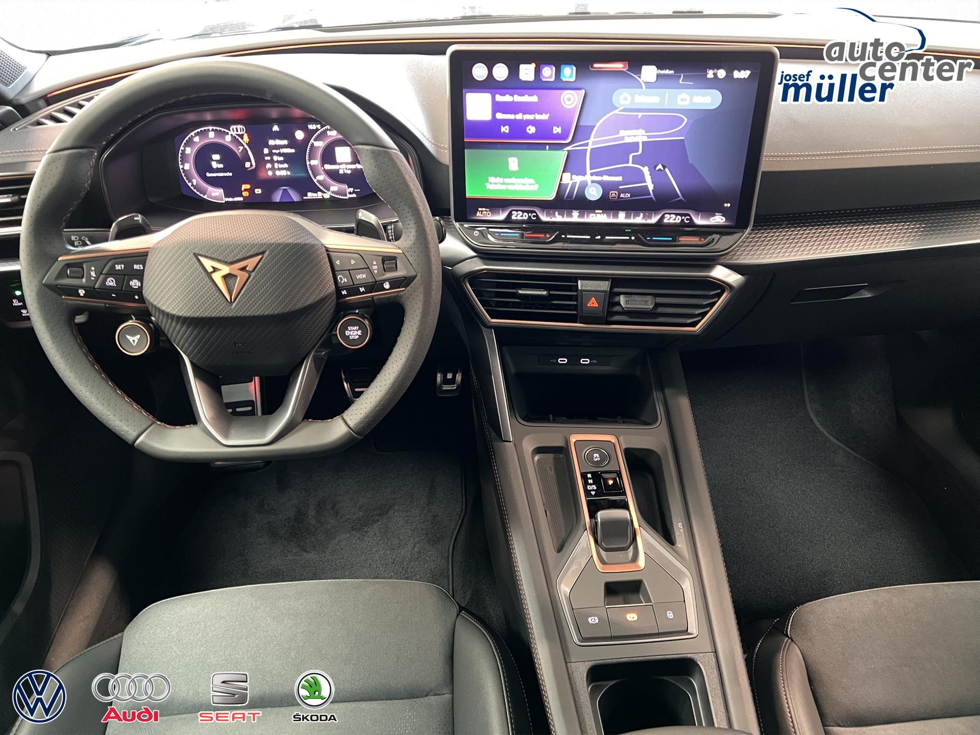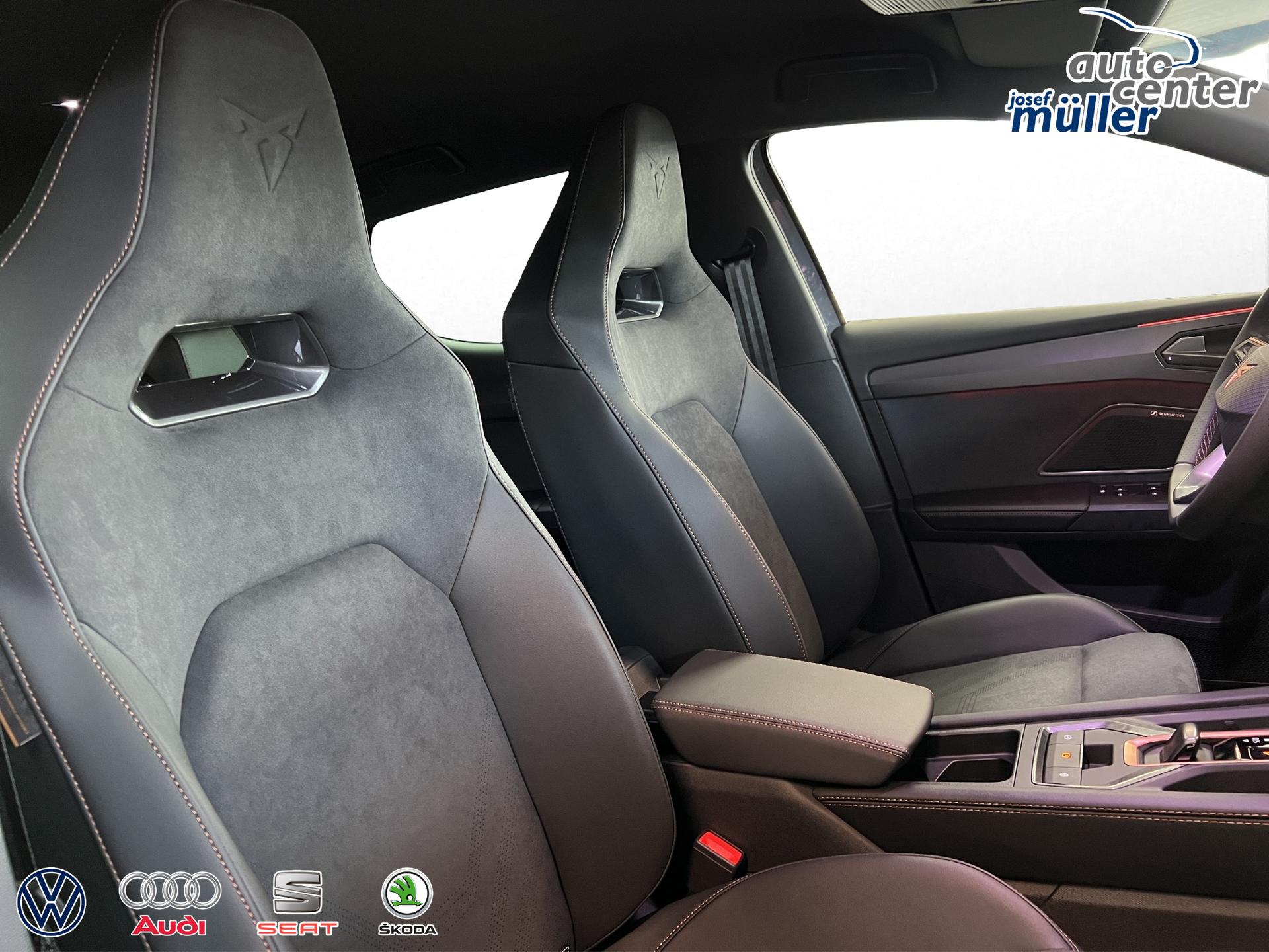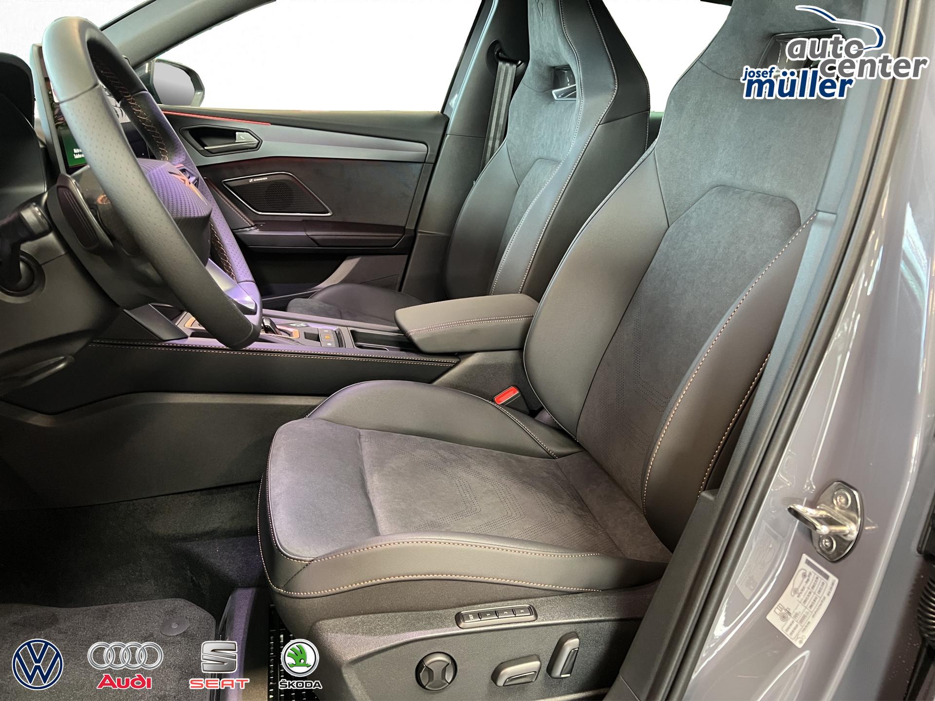 ACC bis 210km/h, Fernlichtassistent, 3-Zonen-Climatronic, Digital Cockpit Plus, Induktive Ladefunktion, Wireless Full Link,  Supersport-Multifunktionslederlenkrad beheizbar, LED-Tagfahrlicht, 230V Steckdose im Kofferraum, 2* USB-C vorne 2* USB-C hinten, Fahrer- und Beifahrerairbag, Außenspiegel elektrisch verstell- , beheiz- und anklappbar, Coming Home-/ Leaving Home Funktion, Dachhimmel schwarz, XDS, Front Assist, Innenspiegel autom. abblendbar, ISOFIX, Mittelarmlehne vorne, abgedunkelte Seitenscheiben ab der B-Säule, Sprachsteuerung, Cupra Drive Profil, Parksensoren vorne und hinten, Licht und Regensensor, DAB, el. Handbremse inkl. auto Hold, el. Fensterheber vorne und hinten, Gepäckraumabdeckung, LED- Nebelscheinwerfer, LED-Rückleuchten mit dynamischen Blinker, Mittelarmlehne hinten, Rücksitzlehne geteilt umklappbar, Reifendruckkontrolle, Start-Stopp- Funktion, Tank 45l, Verkehrszeichenerkennung, el. Wegfahrsperre, eCall, uvm.