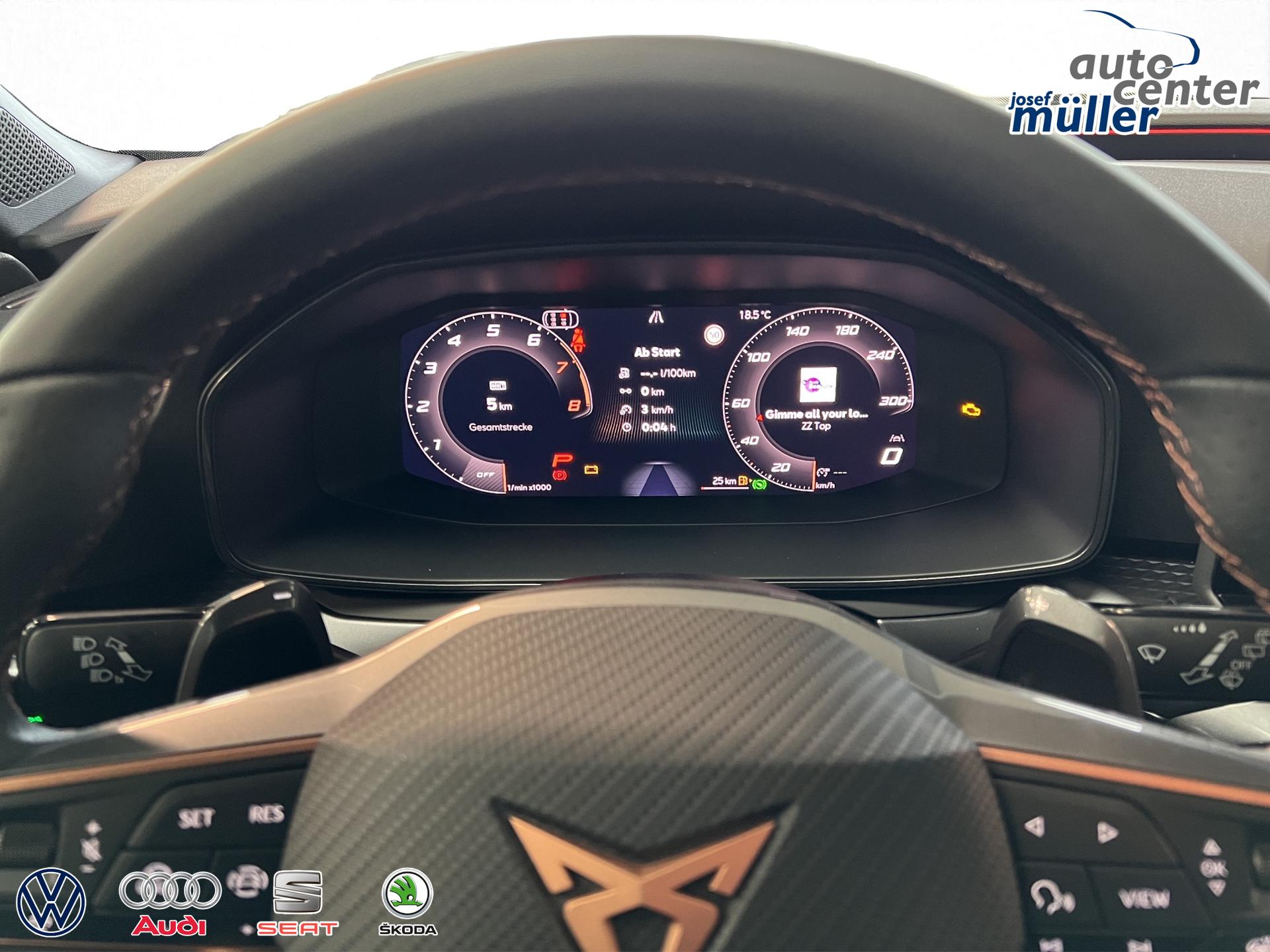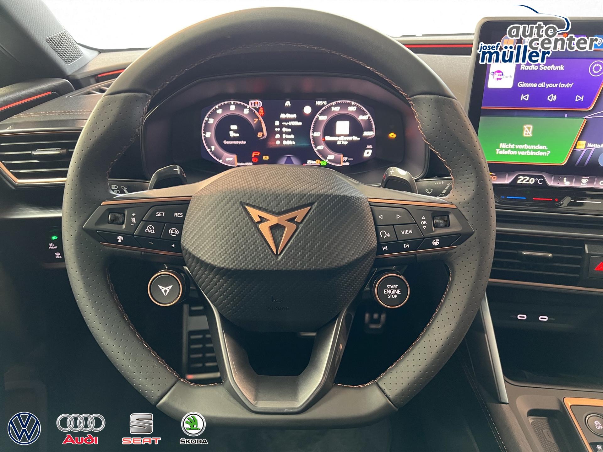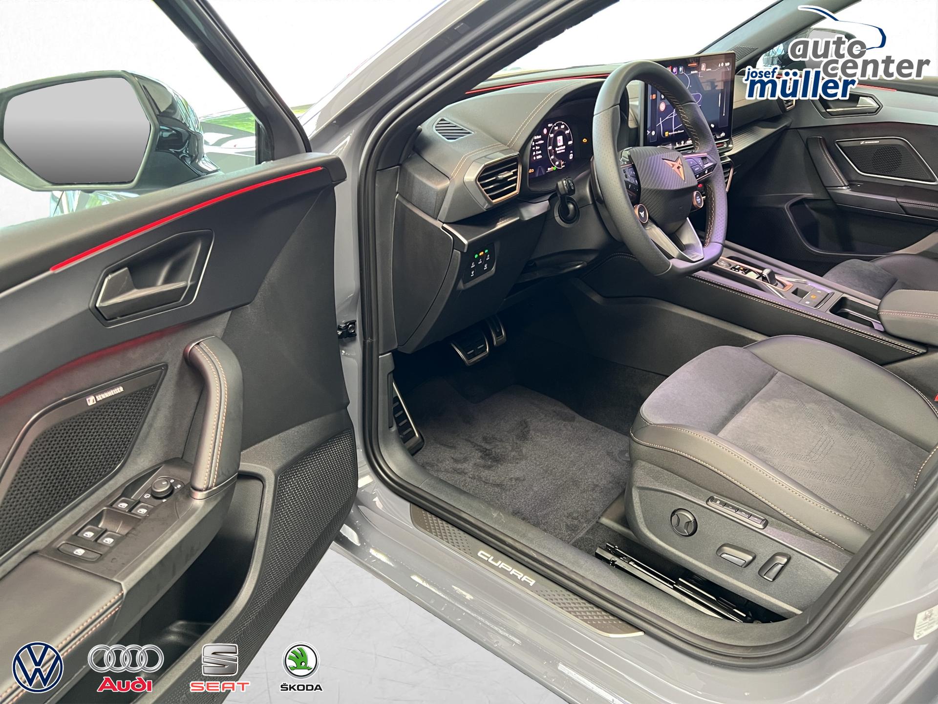 ACC bis 210km/h, Fernlichtassistent, 3-Zonen-Climatronic, Digital Cockpit Plus, Induktive Ladefunktion, Wireless Full Link,  Supersport-Multifunktionslederlenkrad beheizbar, LED-Tagfahrlicht, 230V Steckdose im Kofferraum, 2* USB-C vorne 2* USB-C hinten, Fahrer- und Beifahrerairbag, Außenspiegel elektrisch verstell- , beheiz- und anklappbar, Coming Home-/ Leaving Home Funktion, Dachhimmel schwarz, XDS, Front Assist, Innenspiegel autom. abblendbar, ISOFIX, Mittelarmlehne vorne, abgedunkelte Seitenscheiben ab der B-Säule, Sprachsteuerung, Cupra Drive Profil, Parksensoren vorne und hinten, Licht und Regensensor, DAB, el. Handbremse inkl. auto Hold, el. Fensterheber vorne und hinten, Gepäckraumabdeckung, LED- Nebelscheinwerfer, LED-Rückleuchten mit dynamischen Blinker, Mittelarmlehne hinten, Rücksitzlehne geteilt umklappbar, Reifendruckkontrolle, Start-Stopp- Funktion, Tank 45l, Verkehrszeichenerkennung, el. Wegfahrsperre, eCall, uvm.