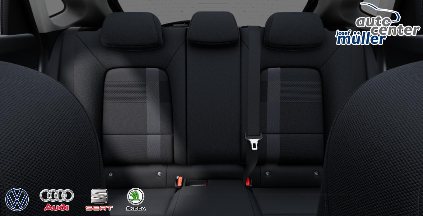 • Make-up-Spiegel in den Sonnenblenden, Lenkrad beheizbar, Schalthebelknauf in Leder, Multifunktions-Lederlenkrad, Mittelarmlehne vorn, Gepäckraumbeleuchtung, Fensterheber vorn und hinten elektrisch, Zentralverriegelung mit Funkfernbedienung, Wegfahrsperre, Notrufsystem eCall, Radio-Navigationssystem (Farbdisplay, Touchscreen, App-Connect), USB-Schnittstelle, Regensensor, Spurhalteassistent "Lane Assist", Rückfahrkamera, Verkehrszeichenerkennung, Reifendruckkontrolle, ParkPilot hinten, LED-Tagfahrlicht, Lichtsensor, Scheiben ab der B-Säule abgedunkelt, 16 Zoll Leichtmetallräder, Scheibenwischer-Intervallschaltung, Türgriffe in Wagenfarbe, Stoßfänger in Wagenfarbe, Außenspiegel elektrisch einstell- und beheizbar, Außenspiegelgehäuse in Wagenfarbe, Servolenkung, Start-Stopp-Anlage, Isofix, ABS, ESC, ASR, HAC, MCB, Airbag für Fahrer und Beifahrer, Beifahrerairbag-Deaktivierung, Seitenairbag vorn mit Kopfairbag, Sitzheizung vorn, Rücksitzlehne geteilt umklappbar, City-Notbremsfunktion inkl. Front Assist, Müdigkeitserkennung, Fußgängererkennung, Dreipunkt-Sicherheitsgurte, Kopfstützen, Digital Cockpit inkl. Bordcomputer, Klimaautomatik Climatronic, Fahrmodusauswahl