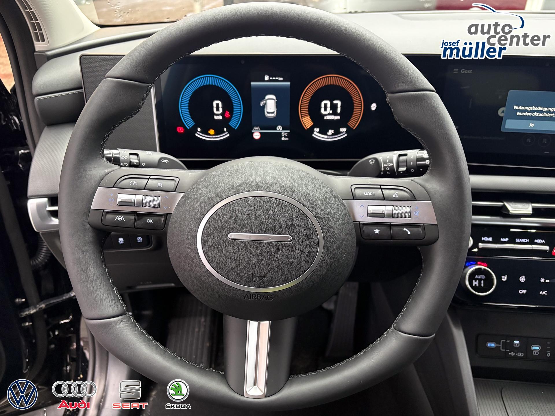 • Lenkrad in Leder, höhenverstellbar, mit Multifunktionen, mit Lenkradheizung