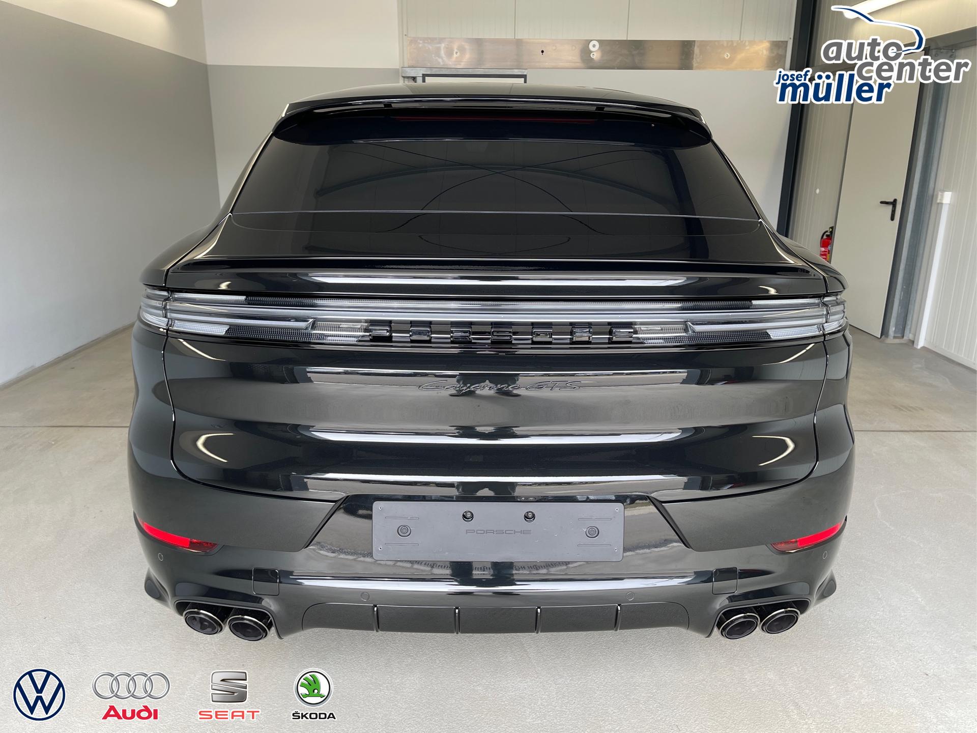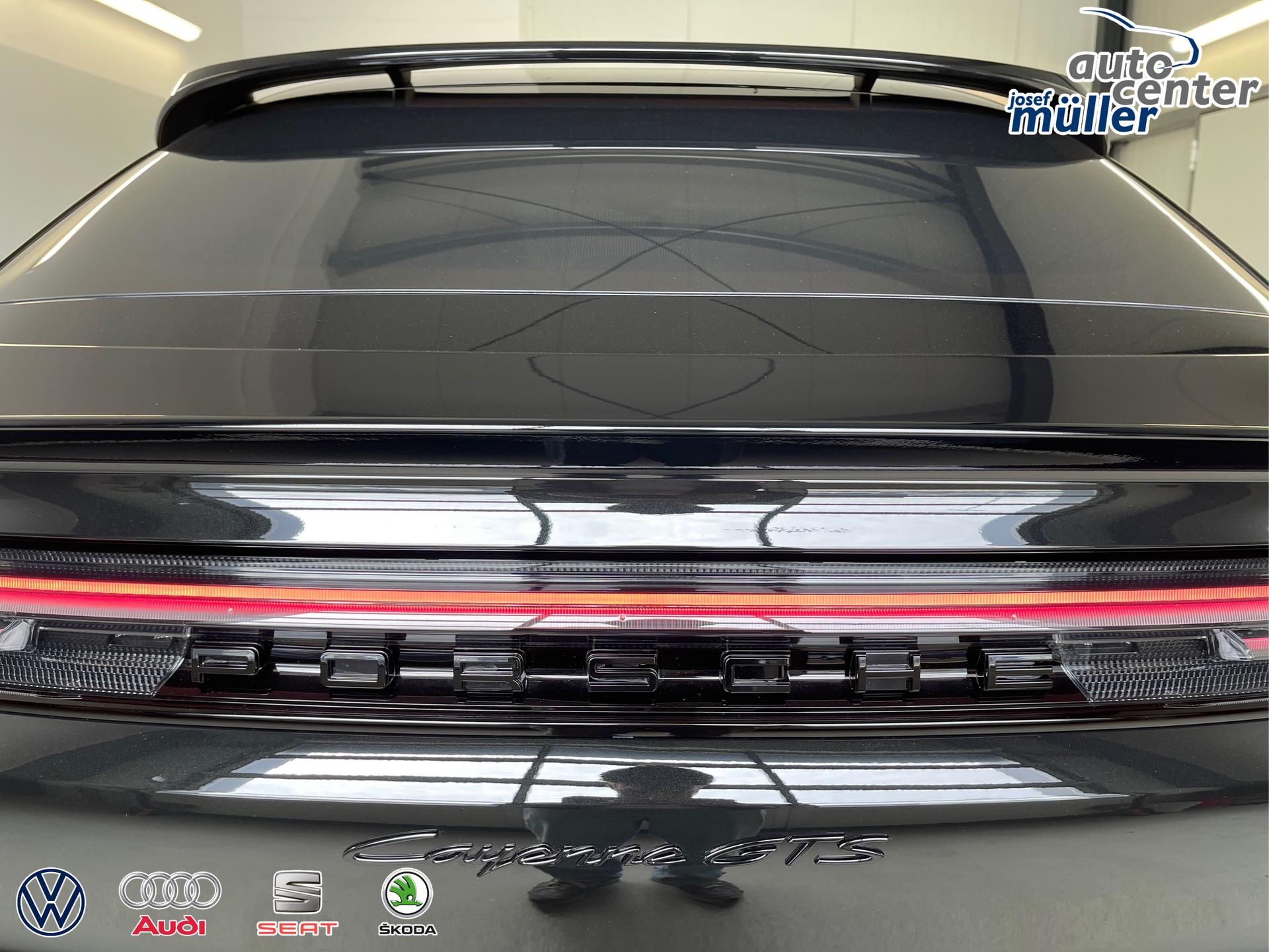 4,0-Liter-V8-Biturbo-Motor, HD-Matrix LED-Hauptscheinwerfer abgedunkelt, GTS Sportsitze vorn mit integrierten Kopfstützen, GT-Sportlenkrad mit Lenkradkranz in Race-Tex inklusive Lenkradheizung und Mode-Schalter, Sport Chrono Paket, SportDesign Paket lackiert in Schwarz (hochglanz), Sportabgasanlage inkl. Sportendrohren dunkelbronze, Adaptive Luftfederung mit Niveauregulierung und Höhenverstellung inklusive Porsche Active Suspension Management (PASM) und Tieferlegung um 10 mm: Adaptive Luftfederung mit: - volltragenden Luftfederbeinen (2-Kammer-2-Ventil-Technologie) - Niveauregulierung - elektronisch geregeltes Dämpfungssystem Porsche Active Suspension Management (PASM) mit kontinuierlicher Dämpferregelung und 3 manuell wählbaren Kennlinien inklusive sportlicherer GTS Abstimmung - Heckabsenkung, ParkAssistent inklusive Surround View,Automatische Heckklappe mit Gestensteuerung, Navigationsgerät High, Smartphone-Ablage inklusive kabellosem Laden (bis zu 15W Ladeleistung)
