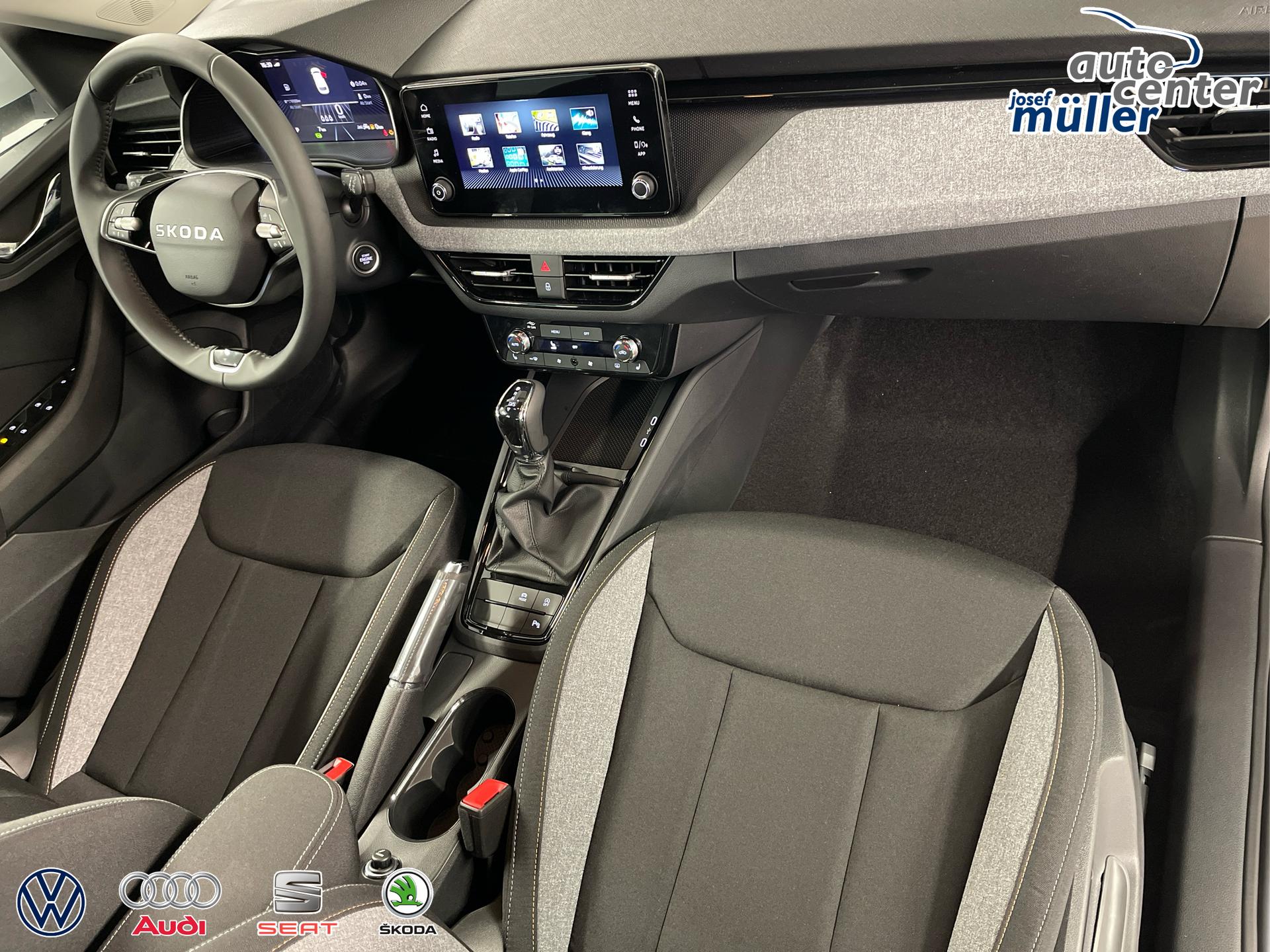 • 16 Zoll Leichtmetallräder, Airbag für Fahrer und Beifahrer, Beifahrerairbag-Deaktivierung, Seitenairbag vorn mit Kopfairbag, Notrufsystem eCall, Dachreling in Schwarz, Klimaautomatik 2-Zonen-Climatronic, USB-C Schnittstelle, Digitaler Radioempfang DAB, Digital Cockpit inkl. Bordcomputer, Scheibenbremsen vorn und hinten, ESC, ABS, ASR, Front Assist inkl. City-Notbremsfunktion, Fensterheber vorn und hinten elektrisch, Berganfahrassistent, Wegfahrsperre elektronisch, Zentralverriegelung mit Funkfernbedienung, Waschwasser-Standanzeige, Mittelarmlehne vorne Jumbo Box, Lichtsensor, Raucherpaket, Isofix Beifahrersitz, Freisprecheinrichtung Bluetooth, 12 Volt Steckdose, Reserverad als Notrad, Vordersitze höhenverstellbar, Radio Skoda Infotainment, Heckscheiben Wisch-Waschanlage, Lendenwirbelstütze für die Vordersitzlehnen, Brillenhalter, Geschwindigkeitsregelanlage mit Speed-Limiter, Reifendruckkontrolle, Verkehrszeichenerkennung, Kopfstützen, Multifunktions-Lederlenkrad mit Schaltwippen, Lenksäule höhenverstellbar, Wireless App-Connect, Servolenkung, Dreipunkt-Sicherheitsgurte, Rücksitzlehne geteilt umklappbar, Sicherheitsinnenspiegel automatisch abblendend, Spurhalteassistent, Start-Stopp-Anlage