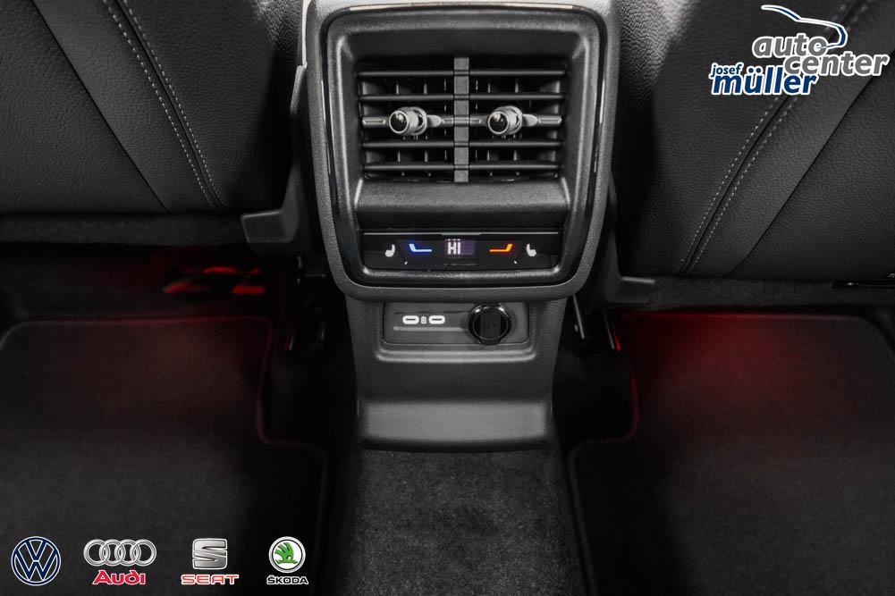 Beifahrersitz höhenverstellbar, Fahrersitz höhenverstellbar, Sport-Lederlenkrad, Lendenwirbelstütze vorne, Mittelarmlehne vorne, Sitzbezug Stoff, Sport-Komfortsitze vorne, geteilt umklappbare Rücksitzlehne, Lenkrad höhenverstellbar, Ambiente-Beleuchtung, Elektrisch verstellbare Vordersitze mit Memory, Beheizbares Lenkrad, Multifunktionslenkrad, Isofix, Isofix Beifahrersitz, abgedunkelte Scheiben, 19 Zoll Alufelgen, Dachreling schwarz, Stoßfänger in Wagenfarbe, Türgriffe in Wagenfarbe, ABS, Außenspiegel elektrisch einstell-/anklappbar, Fensterheber elektrisch, Kopfairbags, Seitenairbags, Servolenkung, Sitzheizung vorne, ESP, Standheizung, Wegfahrsperre, Zentralverriegelung mit Funk, Außenspiegel beheizbar, Beifahrerairbag, Fahrerairbag, Partikelfilter, Parkpilot hinten, Parkpilot vorne, Reifendruckkontrolle, Head-up Display, Regensensor, Lichtsensor, Digital Cockpit, Anhängekupplung schwenkbar, Tempomat Abstand ACC, Notbremsassistent, Spurhalteassistent, Totwinkelassistent, Verkehrszeichenerkennung, Matrix-LED-Scheinwerfer, LED-Tagfahrlicht, Kurvenlicht, Rückfahrkamera, Elektrische Heckklappe inkl. Virtual Pedal, Keyless Advanced - Schlüsselloses Schließ- und Startsystem, StartStopSystem, Sitzheizung hinten, Innenspiegel automatisch abbl., Berganfahrassistent, Müdigkeitswarnsystem, Notrufsystem, Schaltwippen, Klimaautomatik 3-Zonen, Geschwindigkeitsbegrenzer, Android Auto, Apple Carplay, Freisprecheinrichtung, Induktionsladestation, Sprachsteuerung, Touchscreen, USB Tpy-C, Radio DAB, Bluetooth, Bordcomputer, Navigationssystem, Soundsystem Canton, Klimakomfortscheibe, Wired and Wireless App-Connect, Emergency Assist und Stauassistent, LED-Rückleuchten,