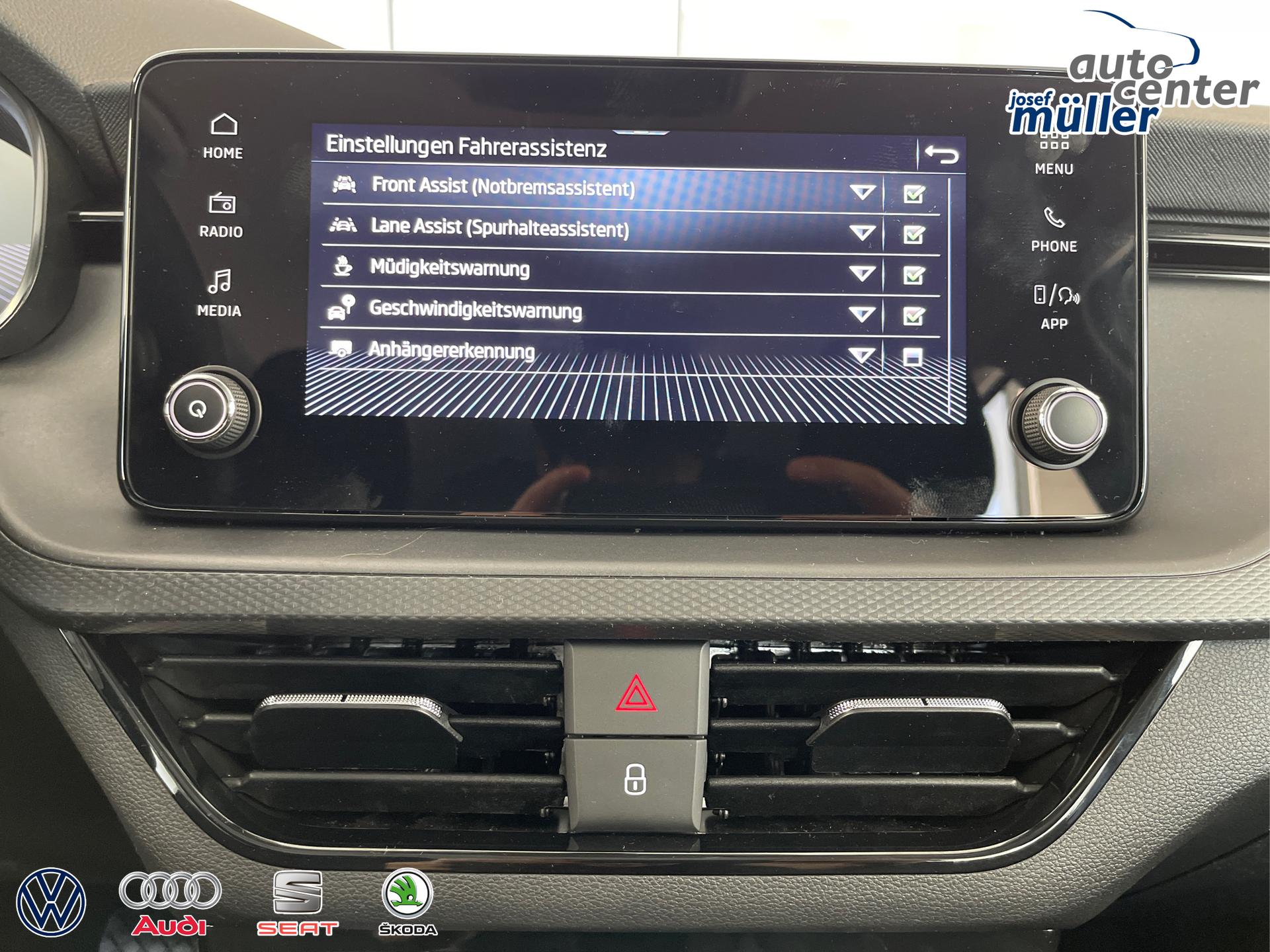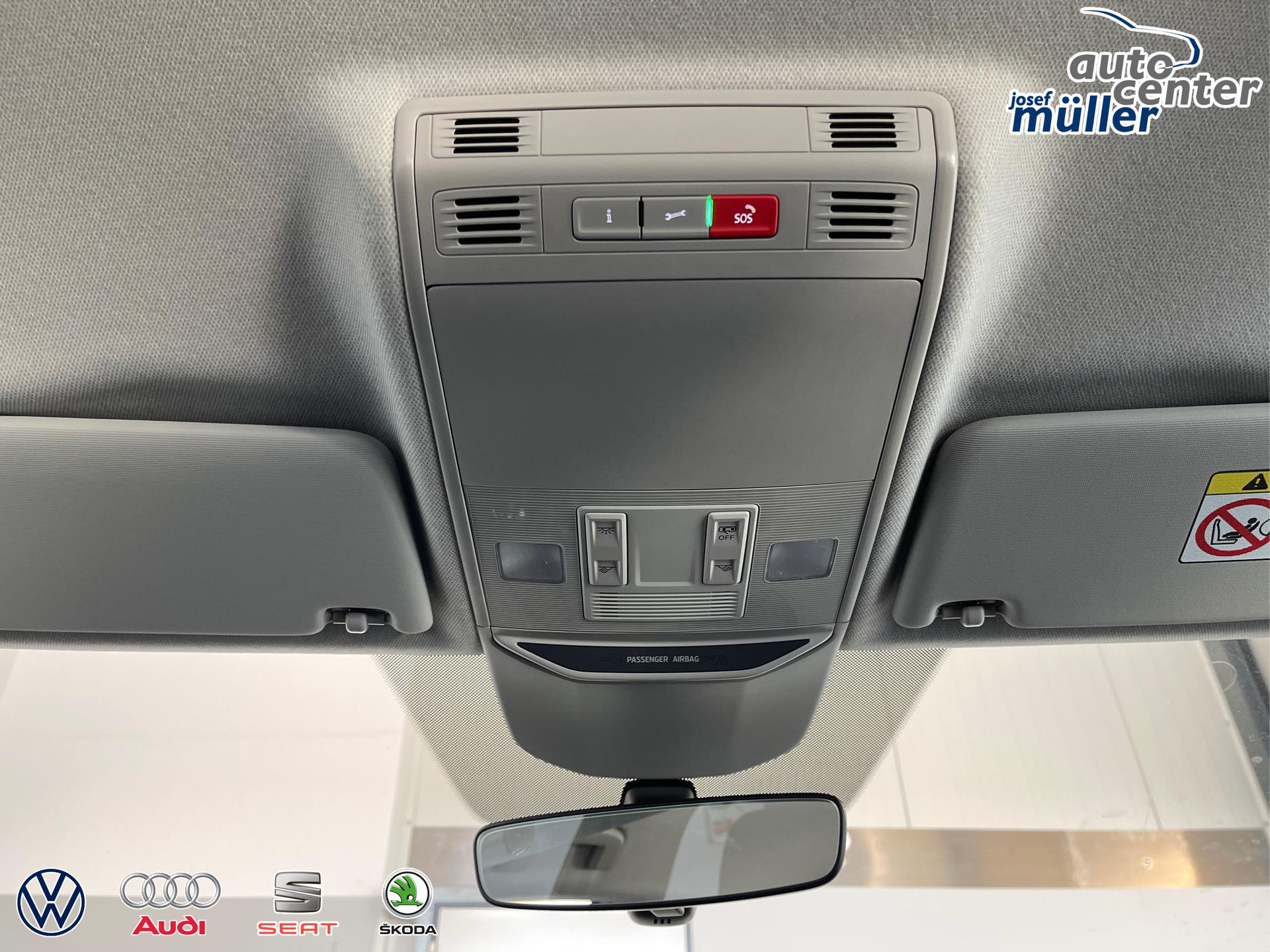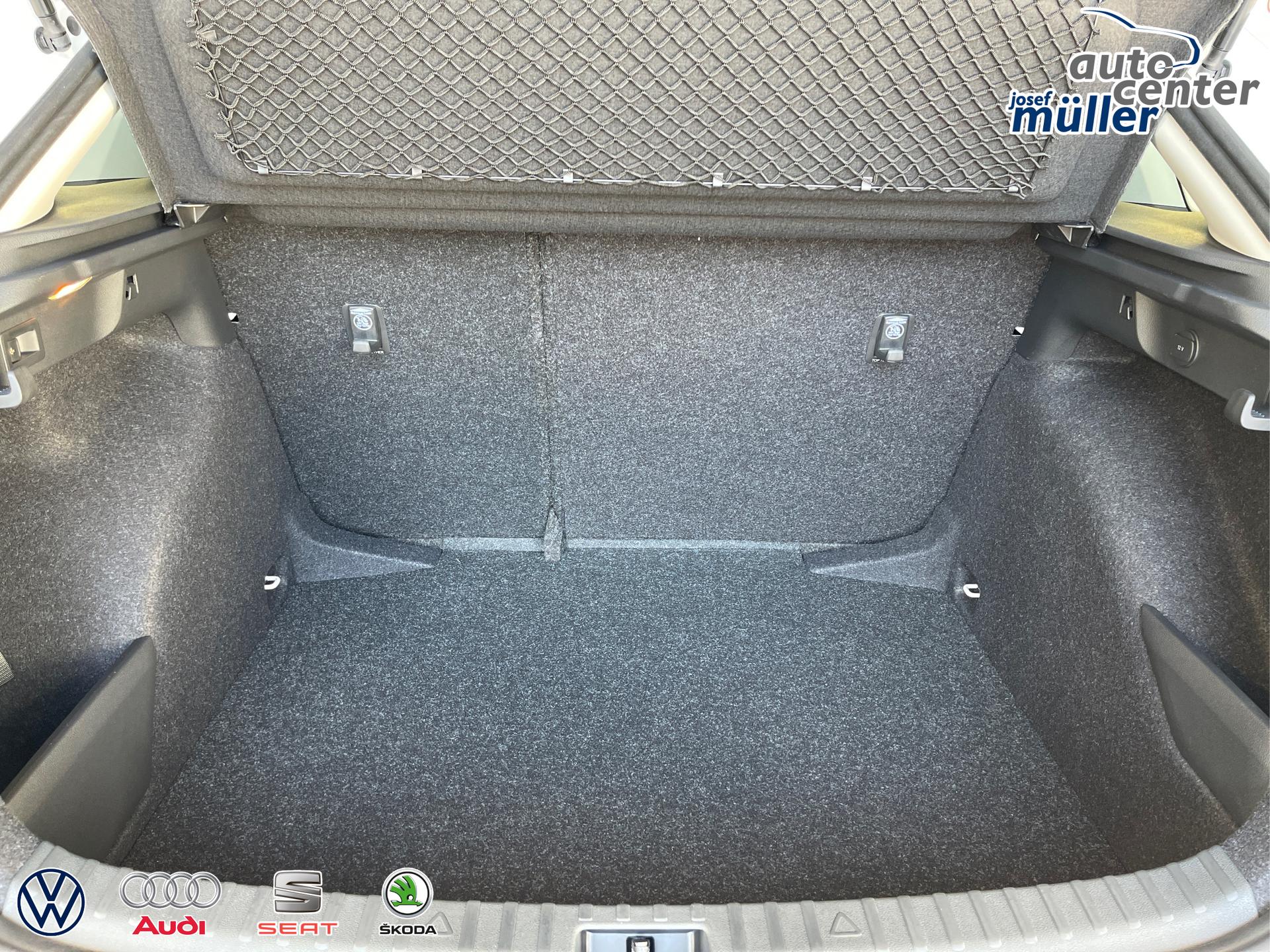 • Front Assist inkl. City-Notbremsfunktion, Mittelarmlehne vorn mit Jumbobox, Scheibenbremsen, ESP, ABS, ASR, Fußgängererkennung, Nebelscheinwerfer, Kopfstützen, Klimaanlage, Scheibenwischer-Intervallschaltung, Heckscheiben Wisch-Waschanlage, Lichtsensor, Airbag für Fahrer und Beifahrer, Beifahrerairbag-Deaktivierung, Seitenairbag vorn mit Kopfairbag, Start-Stopp-Anlage, Rücksitzlehne geteilt umklappbar, Reifendruckkontrolle, 8 Lautsprecher, Freisprecheinrichtung Bluetooth, Geschwindigkeitsregelanlage inkl. Geschwindigkeitsbegrenzung, Fensterheber elektrisch, Tire-Mobility-Set, USB-C Schnittstelle, Waschwasserstandanzeige, Zentralverriegelung mit Funkfernbedienung, LED-Scheinwerfer, Tagfahrlicht, 12 Volt Steckdose, Radio Infotainment (8 Zoll Fardisplay, Touchscreen), Virtual Cockpit inkl. Bordcomputer, Notrufsystem eCall, Außenspiegel elektrisch einstell- und beheizbar, Wärmeschutzverglasung, Multifunktions-Lederlenkrad, Wegfahrsperre elektronisch, Servolenkung, Verkehrszeichenerkennung