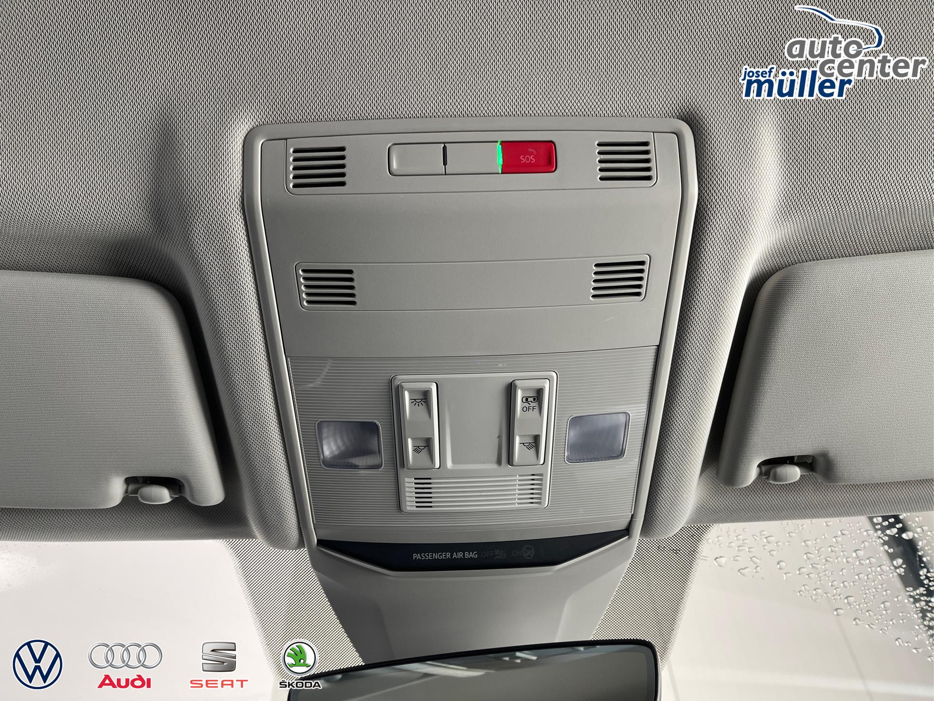 • Fernlichtassistent "Light Assist", USB-Schnittstelle, Dreipunkt-Sicherheitsgurte, Kopfstützen, Airbag für Fahrer und Beifahrer, Beifahrerairbag-Deaktivierung, Seitenairbag vorn mit Kopfairbag, Freisprecheinrichtung Bluetooth, Zentralverriegelung mit Funkfernbedienung, Regensensor, Coming/Leaving Home Funktion, Digital Cockpit (8 Zoll, Bordcomputer), Digitaler Radioempfang DAB+, Notrufsystem eCall, Außenspiegel elektrisch einstell- und beheizbar, Außenspiegel elektrisch anklappbar, Fensterheber vorn und hinten elektrisch, elektronische Parkbremse mit Auto-Hold-Funktion, ESC, ABS, ASR, EDS, EBV, MSR, Berganfahrassistent, Front Assist inkl. City-Notbremsfunktion, Wegfahrsperre, Isofix, Komfortsitze vorn, Reifendruckkontrolle, Gepäckraumabdeckung, Spurhalteassistent "Lane Assist", LED-Scheinwerfer, LED-Rückleuchten, LED-Tagfahrlicht, Make-up-Spiegel in den Sonnenblenden, Multifunktions-Lederlenkrad, Ablagefach unter dem Beifahrersitz, Rücksitzlehne geteilt umklappbar, Mittelarmlehne hinten, ParkPilot vorn und hinten, Fußgängererkennung, Servolenkung, Start-Stopp-Anlage, Innenraumfilter, Uhr, Außentemperaturanzeige, Dachreling Schwarz, Mittelarmlehne vorne, Müdigkeitserkennung, Tire-Mobility-Set, Sicherheitsinnenspiegel automatisch abblendend, Vordersitze höhenverstellbar