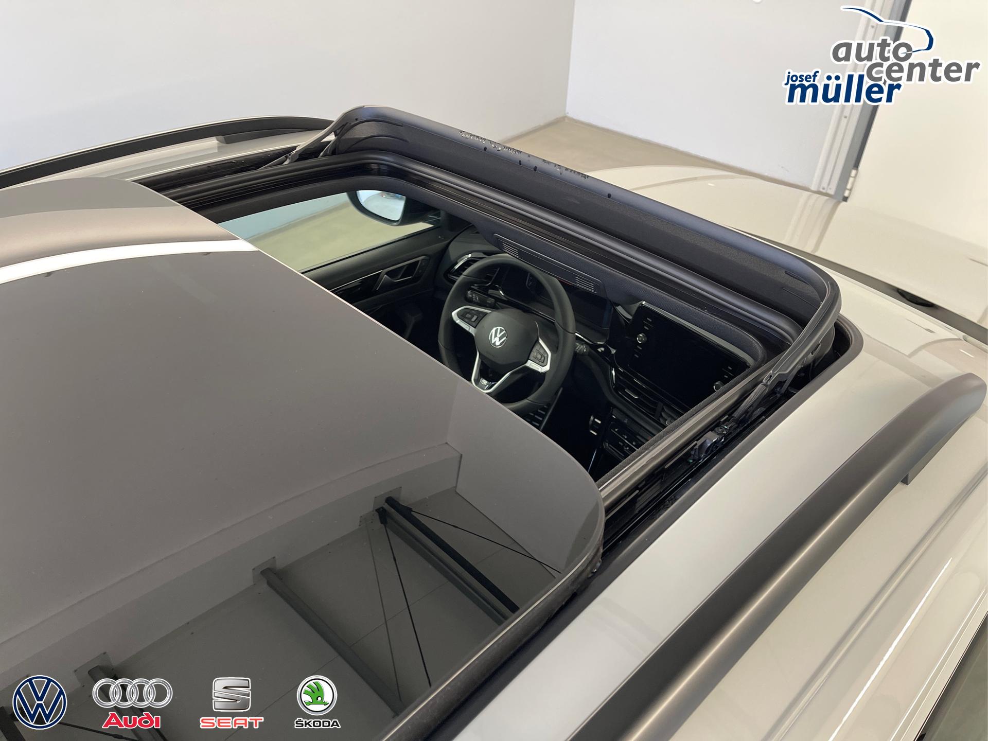 • Design-Paket "Black Style" (T-Roc Schriftzug in Schwarz Hochglanz am Heck, Außenspiegelgehäuse in Kontrastfarbe lackiert, Chrom-Applikationen an (Lichtdreh-, Spiegeleinstell-, Fensterheberschalter, Ausströmer mit Rahmen in Schwarz), Dachreling Schwarz, Scheiben ab der B-Säule abgedunkelt, Zierleisten Schwarz)